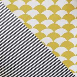Not sure you want to go for scalloped furniture? Or maybe you already have a sleek scalloped bed and need some new bedding. This reversible bedding (scallop one side, stripes the other) is a great statement set.