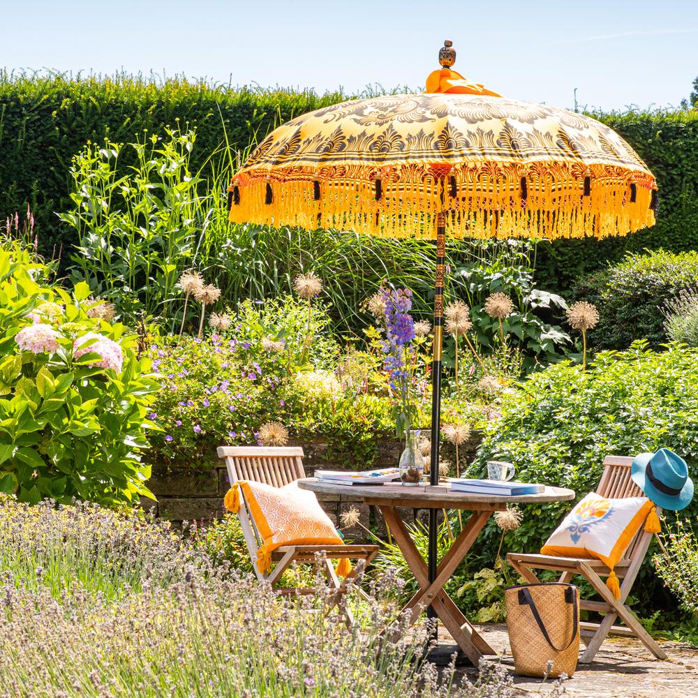 When the sun is out it is of course really important to not just stay hydrated but to protect yourself. Of course, if you’re out and about make sure to wear suncream, but if you’re in your garden, suncream + a parasol is the absolute dream. If you’ve been using the old laptop inside a cardboard box trip for doing your WFH days outside, investing in a parasol will negate all of that and help keep you cooler too. While you can get simple and sensible parasols, we are particularly fond of these uber stylish ones from East London Parasols. In a host of magical prints and beautiful trims, these will create a statement in your garden.