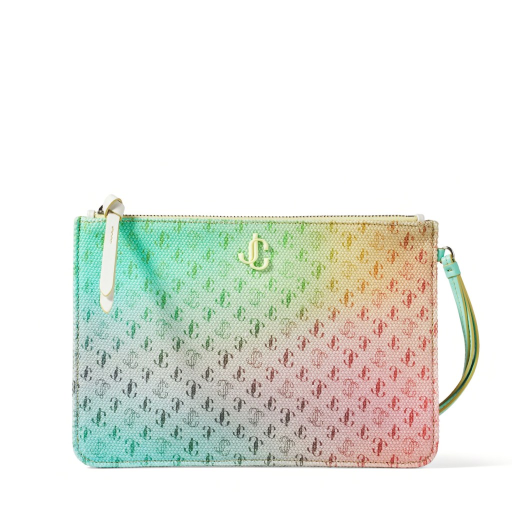 FARA Sunset Mix JC Logo Degrade Canvas Pouch with Sunbleached JC Emblem, £350, Jimmy Choo