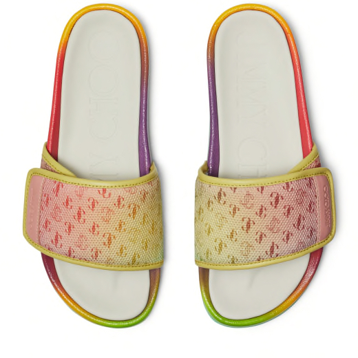 FITZ/F Sunset Mix JC Logo Degrade Canvas and Latte Nappa Leather Pool Slides, £195, Jimmy Choo