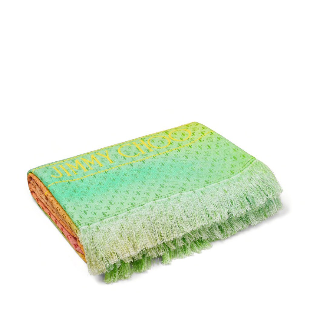 JC BEACH TOWEL, Sunset Mix Printed Cotton Beach Towel, £295, Jimmy Choo
