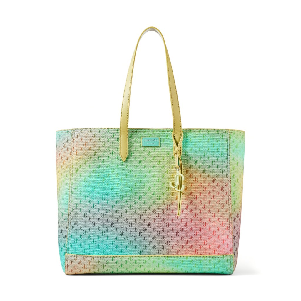 LAYLIN TOTE Sunset Mix JC Logo Degrade Canvas Tote Bag with Subleached Leather Handles, £850, Jimmy Choo