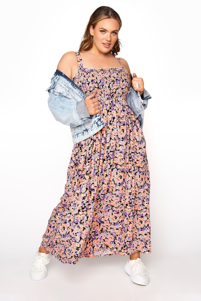 LIMITED COLLECTION Peach Floral Shirred Bust Strappy Dress. £29.99, Yours Clothing