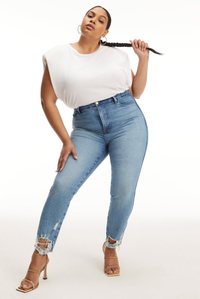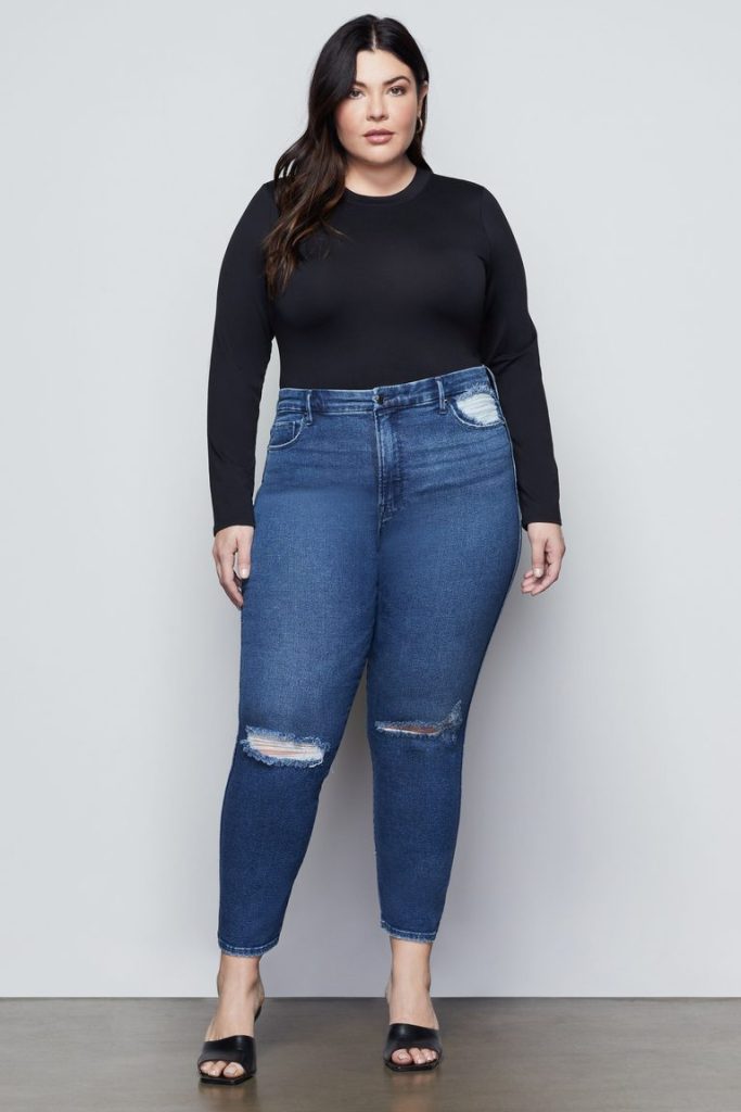 Good American is the denim brand owned by Khloe Kardashian. The jeans focused line has since evolved to encompass tees, shoes and much more, but one thing that has stuck, is Khloe’s ethos of offering her line extensively for a range of sizes. The jean silhouette selection for plus sizes at Good American is extensive and the cuts and fits have been well received.