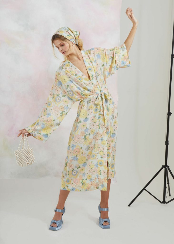 the olivia robe in floral silk, £312, Olivia Rose The Label