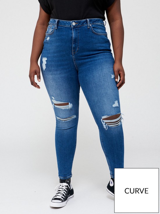 High Waisted Ripped Skinny Jean – Mid Wash, £2, Very