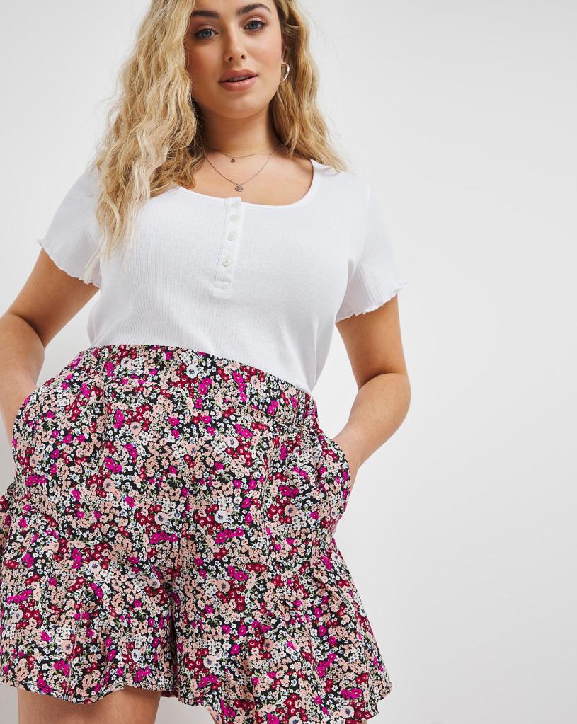 Ditsy Print Frill Hem Flippy Shorts, £16, Simply Be
