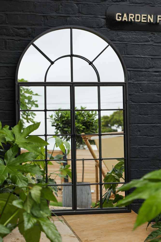 Black Metal Arch Window Pane Indoor/Outdoor Mirror With Opening Doors, £195.00, Rockett St George