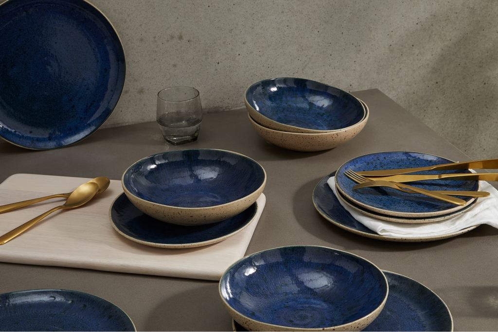 12 Piece Reactive Glaze Two-Tone Dinner Set, Natural & Cobalt