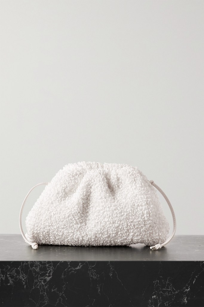 BOTTEGA VENETA, The Pouch small leather-trimmed gathered bouclé clutch, £930, Net A Porter