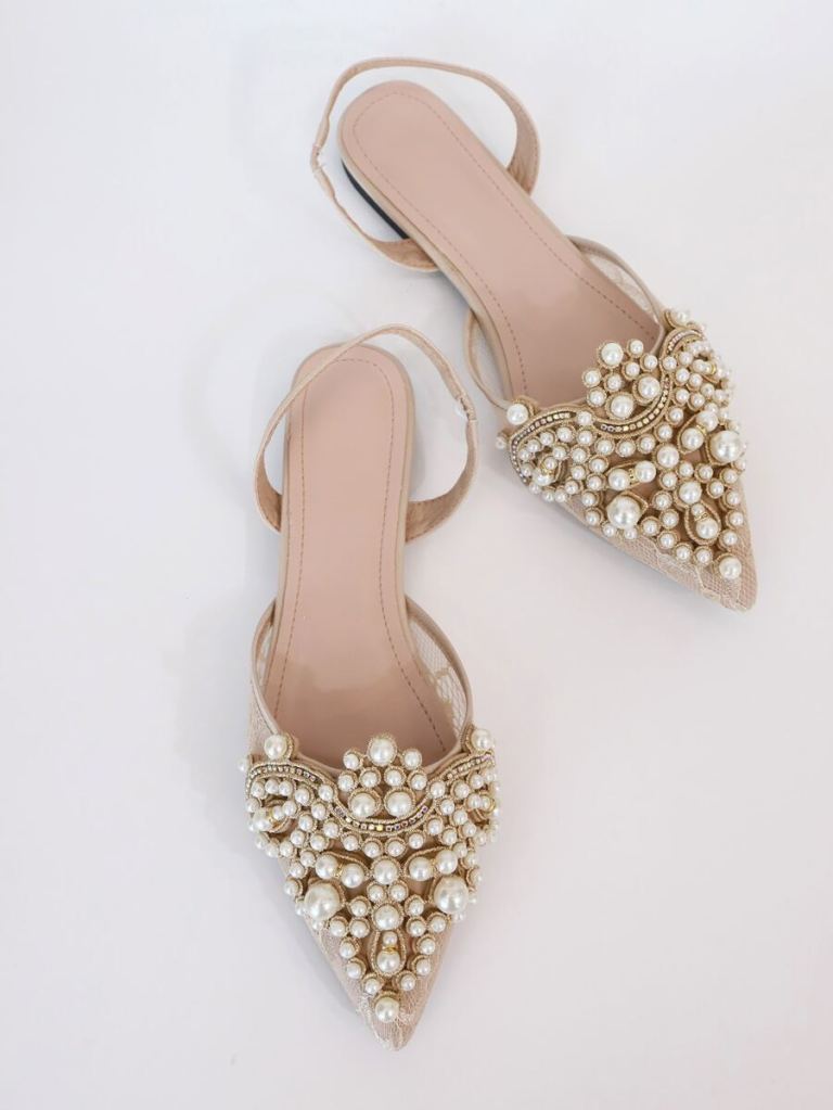 Faux Pearl & Rhinestone Decor Slingback Flats, £17.99, Shein