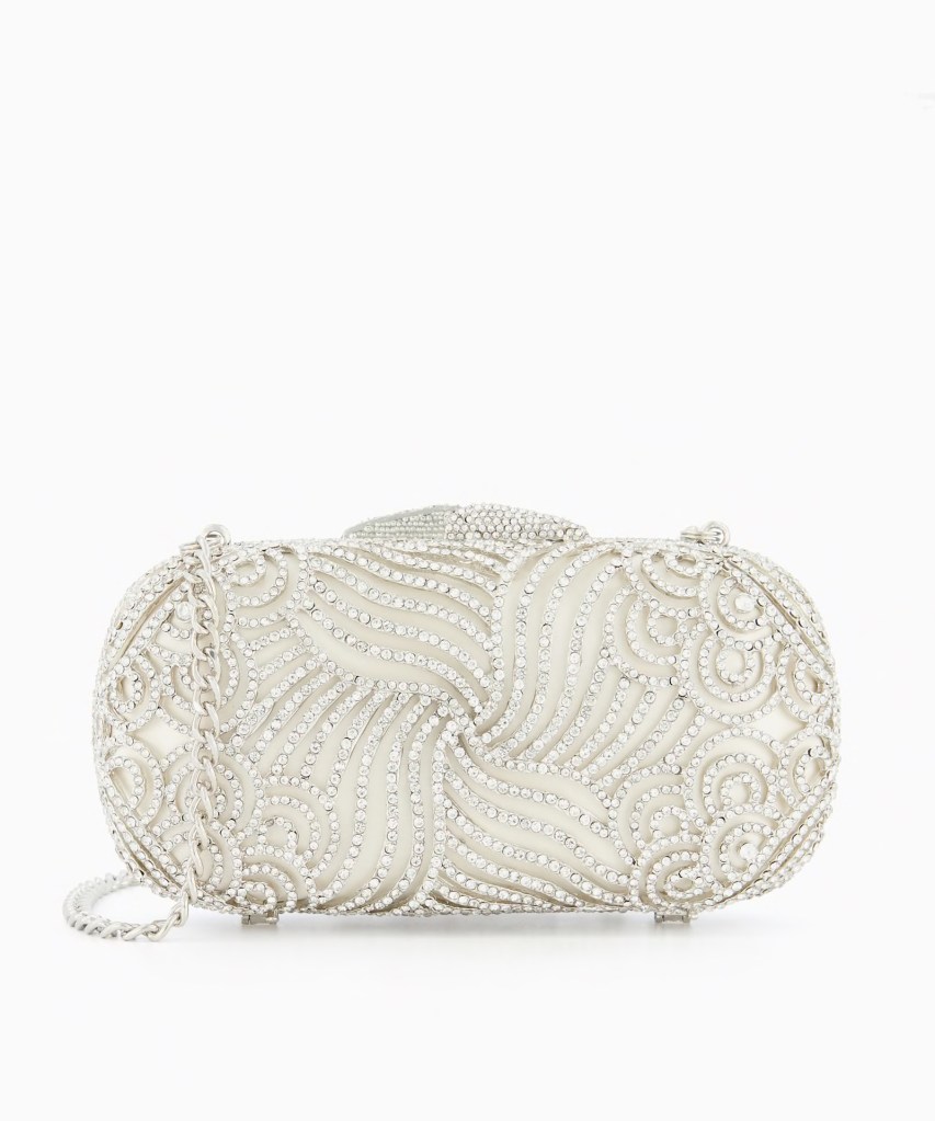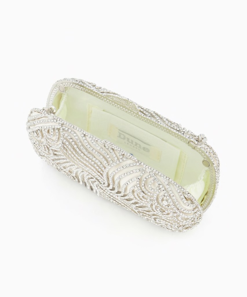 BEAUTIFULLY – Silver, Diamante Embellished Clutch Bag, £195, Dune London