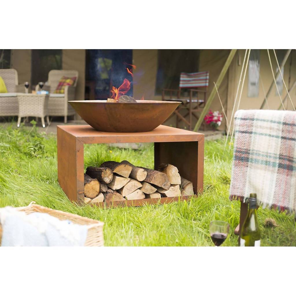 La Hacienda, Moho Oxidised Firepit With Steel Stand, £130, Homebase