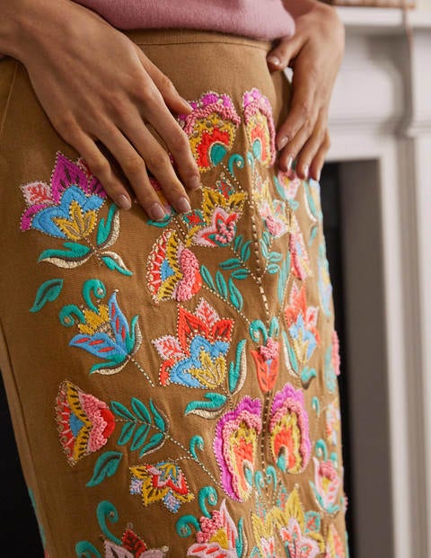 Caitlin Embroidered Skirt – Camel, was £150, now £105, Boden