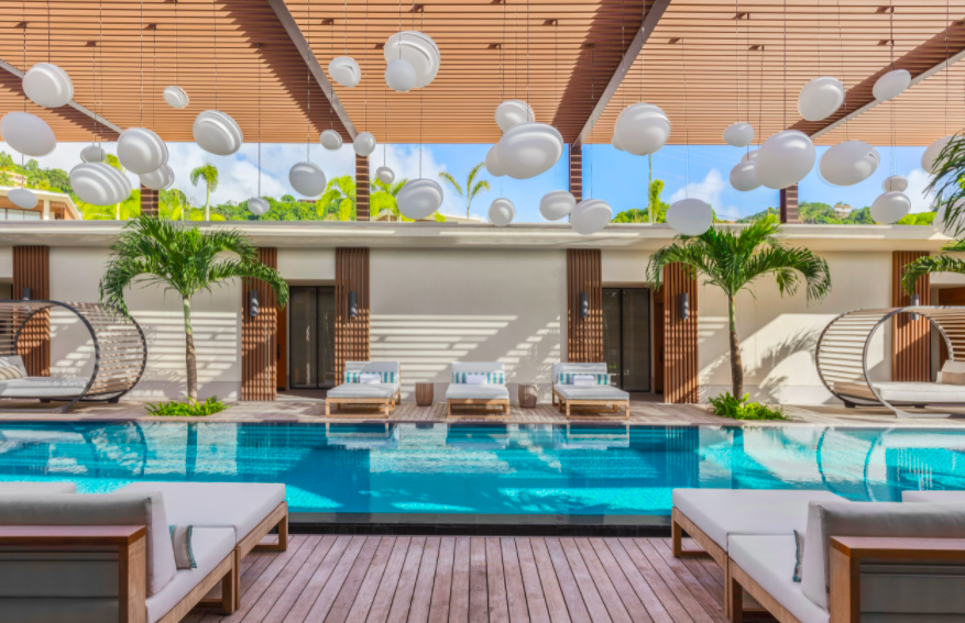 The hotel has a 100m infinity pool – the longest in the Caribbean – and it leads to the soft white sand and crystal clear waters of Grand Anse beach.