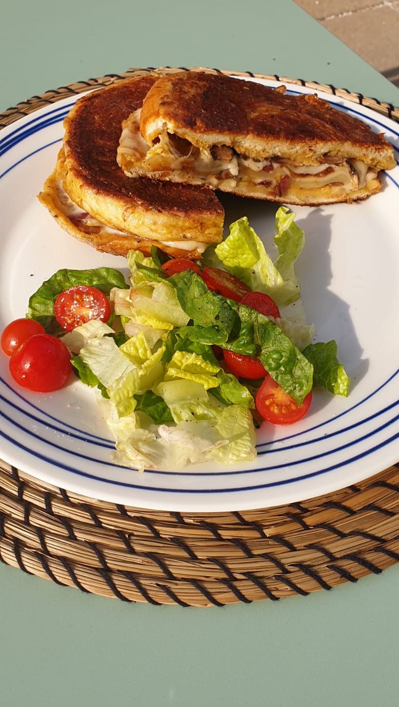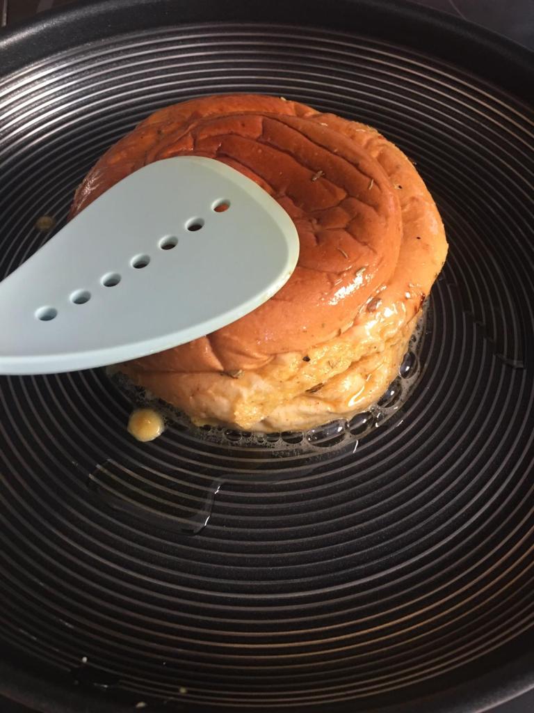 - Remove pan from the heat and place the bread onto a plate or board and layer in your cheese and other toppings and pop on the lids to create sandwiches. Below I’ll list some of my personal favourites.