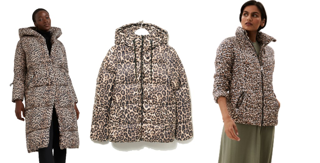 Left: Long leopard padded coat, £95, River Island; Middle: Leopard puffer jacket, £35, Matalan; Right: Thermowarm leopard jacket, £35, Marks & Spencer