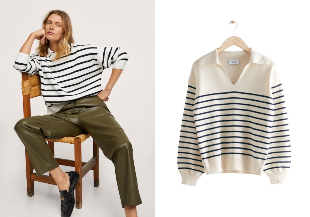 Left: Collared Breton knit jumper, £35.99, Mango; Right: Collared Breton knit, £65, & Other Stories