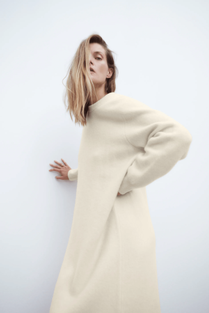Of course fabric matters when it comes to keeping snug in the winter and this cashmere dress from Zara will certainly help you stay super cosy. Worn as a relaxed, jumper dress this can be easily dressed up, particularly over Christmas with great party flats and some statement jewellery. Looking for a more tailored finish? Simply add a slim belt to highlight your waist.
