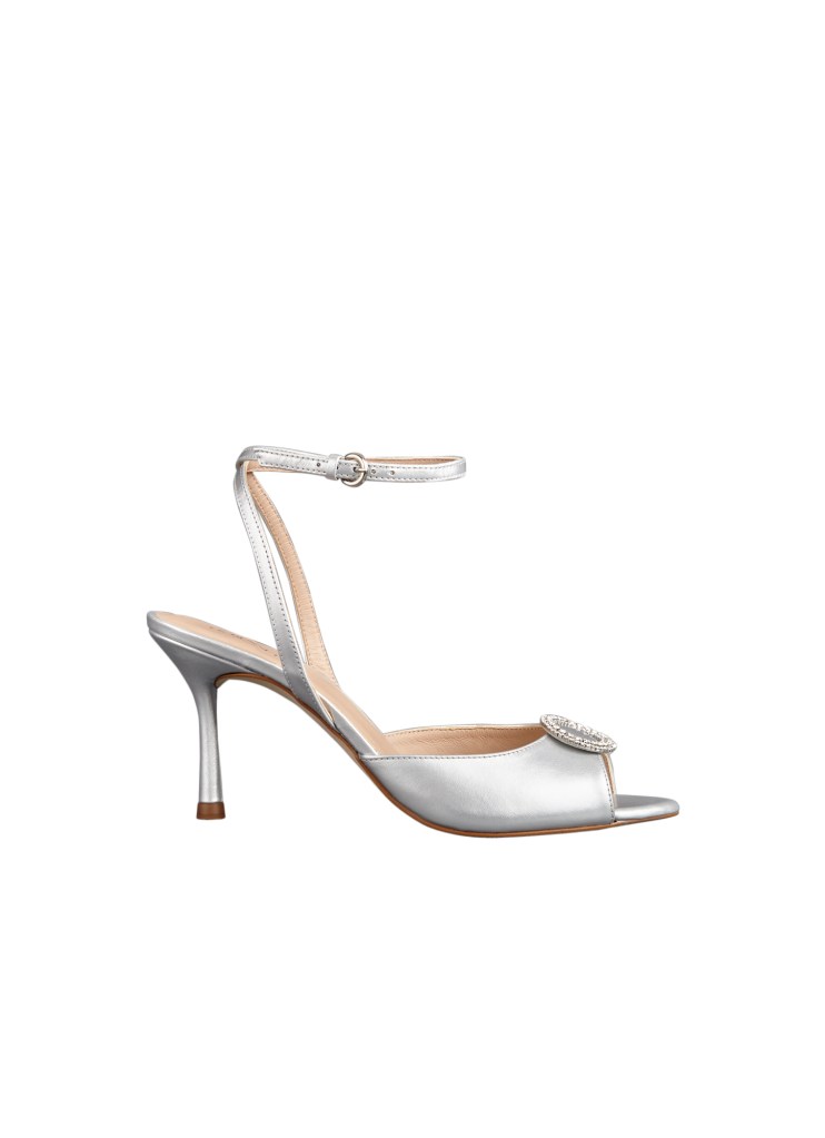 Left to right: Amanda platform heels, £279 (coming soon); Belle silver heels, £259; Lace Leilani heels, £259