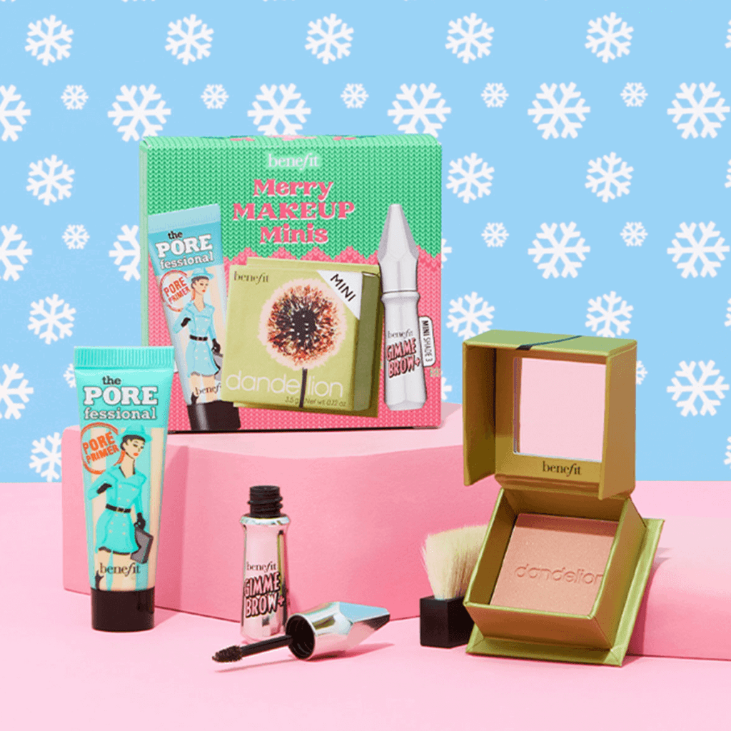 If you’re planning an exciting holiday this year, now is a great time to stock up on makeup minis to save on your liquid allowance. Benefit’s gift sets are a great way to save. The Merry Mini Christmas set contains three popular products in tiny sizes – Dandelion brightening face powder, Gimme Brow brow volumising gel and POREfessional primer. Worth £40, you can now pick up this set for £13.07. Now, THAT’S a benefit!